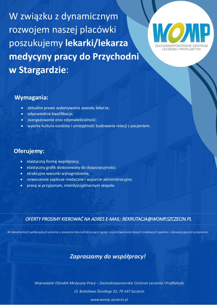 WOMP-ZCLiP w Stargardzie poszukuje do pracy lekarki/lekarza medycyny pracy